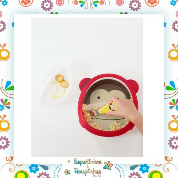 Prato de Treinamento Zoo Macaquinho da Skip Hop foi desenvolvido para estimular a independência das crianças.