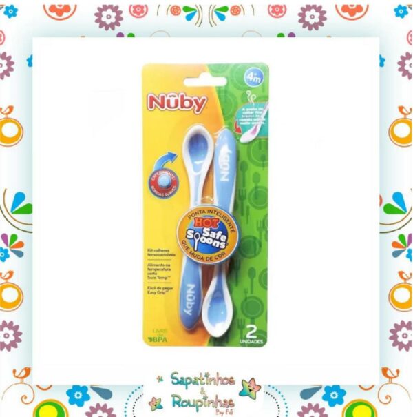O Kit de Colheres Termossensíveis da Nûby é ideal para as primeiras refeições do bebê. Sua ponta macia e sensível protege a gengiva e os novos dentinhos do bebê enquanto sua extremidade que muda de cor quando o alimento está muito quente, ajudam a evitar possíveis acidentes para que a hora de comer fique ainda mais gostosa. Para testar se a refeição do seu pequeno está muito quente, basta colocar a colher no alimento ou líquido preparado para o bebê e aguardar 15 segundos. Se a colher mudar de cor, esfrie o alimento e enxágue a colher em água fria. Repita o processo até que a colher não mude sua cor.