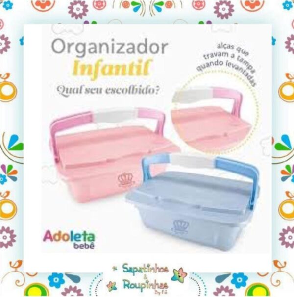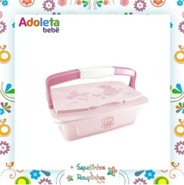 O Organizador Infantil com Alça 5, 6 litros Adoleta Bebê é para armazenar remédios, pomadas, sapatinhos, brinquedos e outros objetos do bebê. Possui textura com tema infantil na tampa e alças seguras e práticas que travam a tampa quando fechadas. Opção transparente para que as crianças consigam ver o que tem dentro.