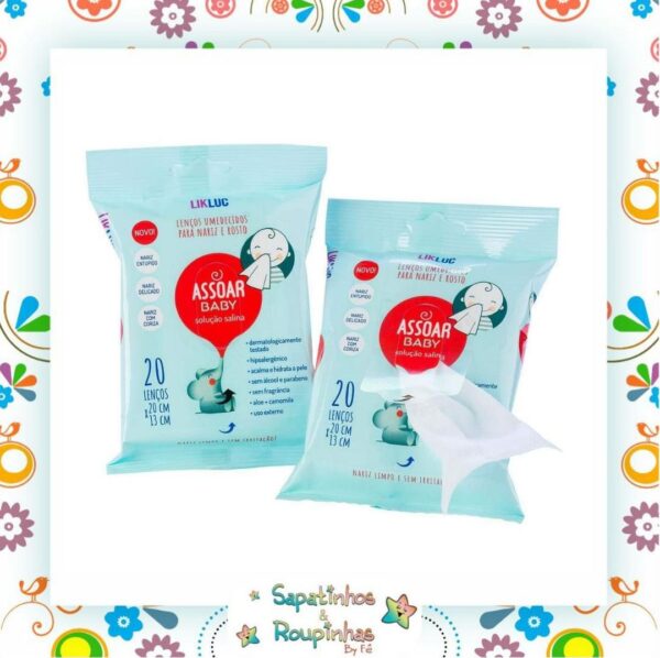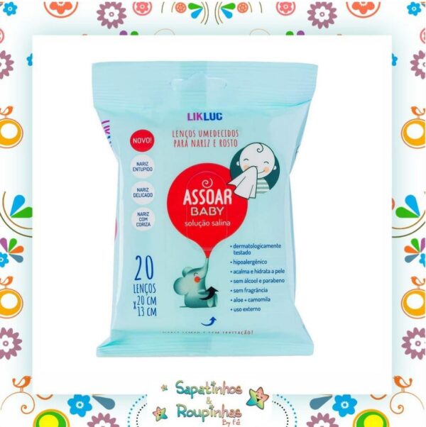 Assoar baby lenços umedecidos com soro fisiológico para nariz e rosto. diferente dos lenços comuns, sua fórmula exclusiva possui solução salina e ingredientes naturais para a correta limpeza do nariz do bebê. Recomendado para nariz entupido, nariz delicado e com coriza. Aloe + camomila.