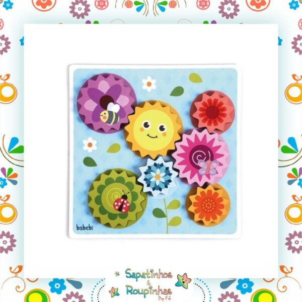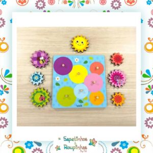 Um encantador jardim de engrenagens que trabalha o desenvolvimento cognitivo, atenção e reconhecimento das cores.