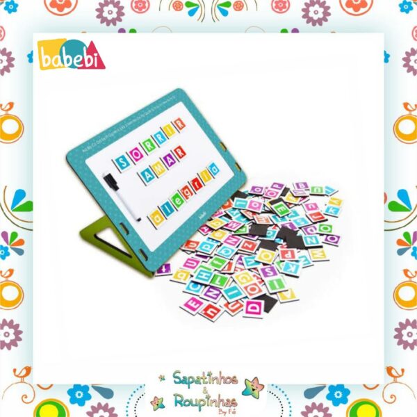 As letrinhas coloridas maiúsculas e minúsculas se atraem à Lousa Magnética Alfabeto Babebi, deixando o aprendizado muito mais lúdico e criativo. Feito de madeira reflorestada e manta magnética.