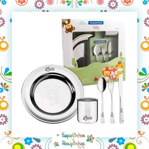 Tramontina – Kit Infantil Refeição Em Aço Inox 5 peças Baby Frieds Com Gravação A Laser