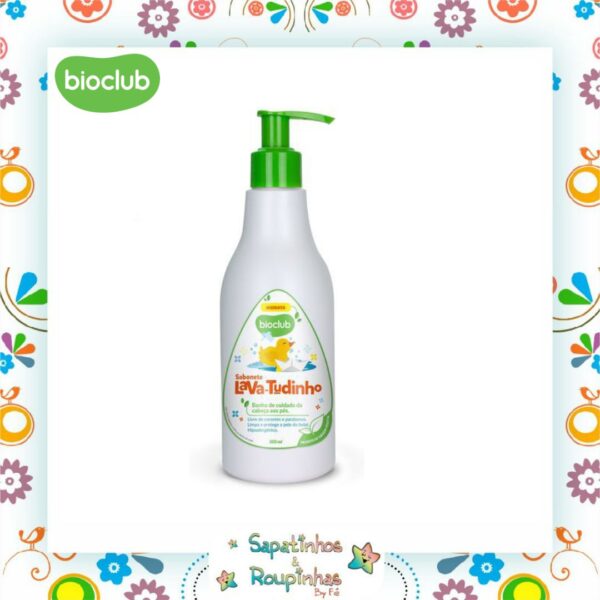 O sabonete líquido Lava Tudinho Bioclub foi desenvolvido com ingredientes suaves e possui uma exclusiva fórmula para limpar suavemente o bebê sem arder os olhos. Limpa delicadamente enquanto ajuda a manter a pele macia e hidratada.