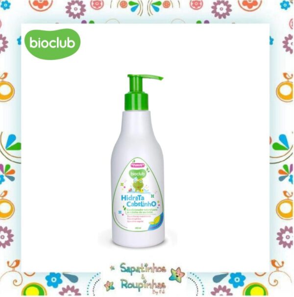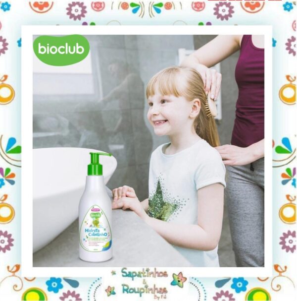 O condicionador Hidrata cabelinho Bioclub infantil Hidrata Cabelinho possui o pH balanceado. A linha para cabelos cuida do couro cabeludo para que o cabelo cresça mais saudável . Desenvolvida por especialistas em cabelo infantil para condicionar e desembaraçar os fios de forma eficaz e segura. Deixa os cabelos macios e fáceis de pentear. Sem álcool etílico. Dermatologicamente testado. Esse produto foi formulado de maneira a minimizar possível surgimento de alergia.