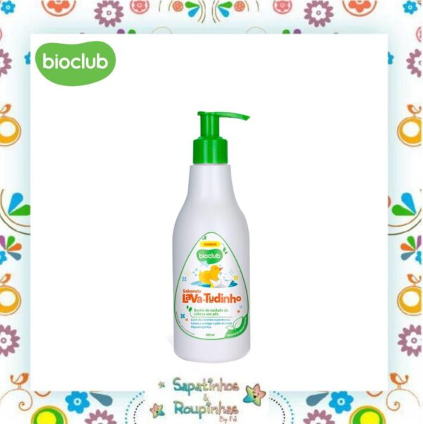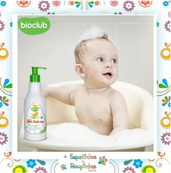 O sabonete líquido lava tudinho Bioclub Baby foi desenvolvido com ingredientes suaves e possui uma exclusiva formula para limpar suavemente o bebe sem arder os olhos.