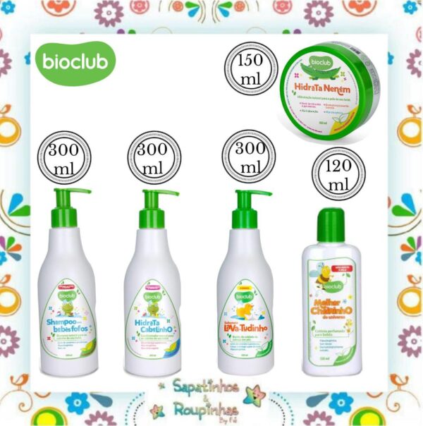 Bioclub – Kit Melhor cheirinho do universo 120ml + Sabonete lava tudinho 300ml + Hidrata neném 150ml + Shampoo para bebês fofos 300ml + Hidrata cabelinho 300ml