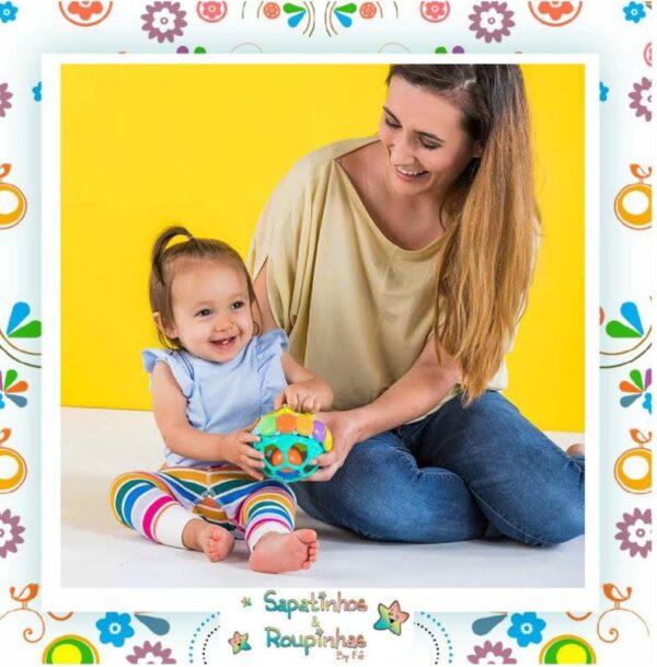 Seu bebê vai adorar tocar as diferentes texturas dessa bola de lagarta colorida! O material flexível e os orifícios para os dedinhos fazem com que esta bola seja fácil de pegar, dobrar e chacoalhar, incentivando o desenvolvimento das habilidades motoras finas.