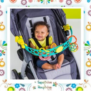 O Flex ’n Go Activity Arch da Oball é facilmente preso à maioria dos carrinhos, bebês conforto e berços, mantendo o bebê entretido com uma Oball fácil de pegar, um macaquinho que balança e um chocalho de argola. Use as Linky Loops para prender outros brinquedos. O material macio e flexível mantém as pequenas mãos ocupadas com desafios táteis e brinquedos com cores fortes.