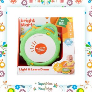 Com três modos de aprendizagem, a criança pode escolher entre sons musicais com luzes, números (em inglês) que são contados a cada batida do tambor ou cores que correspondem à cor indicada em cada aba do brinquedo.