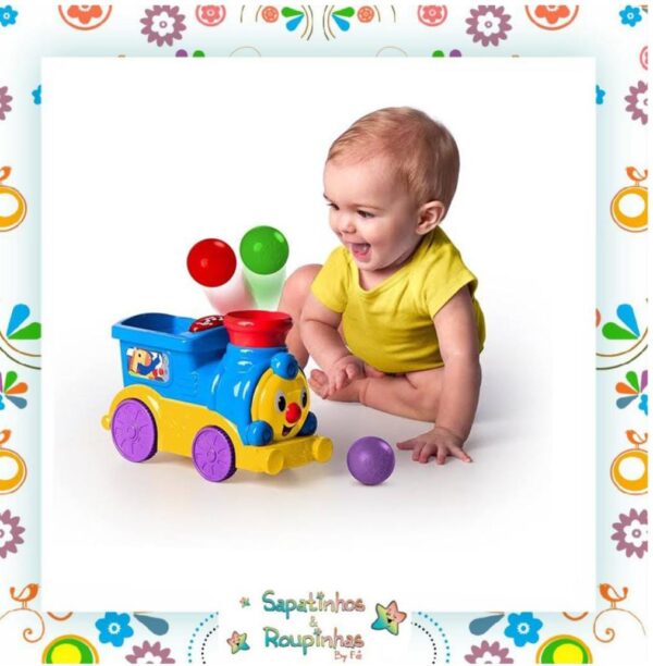 Coloque as bolinhas no vagão de carvão do trem e, à medida que o trem avança, as bolinhas começarão a pular pela chaminé! O bebê vai adorar correr atrás das bolinhas para continuar a diversão.