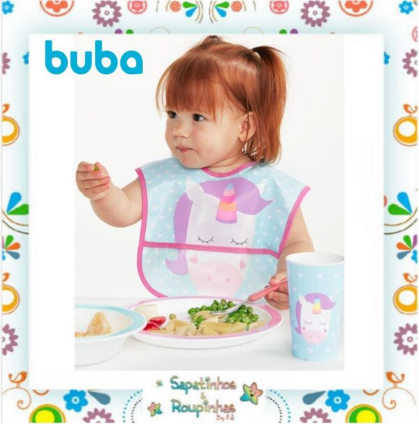O babador com bolso da buba, não pode faltar na hora das refeições do bebê. super moderno, com cores alegres e desenho divertido, foi desenvolvido em tecido impermeável para maior praticidade na hora da limpeza e proteção para o bebê, pois evita molhar ou sujar a roupinha, vem com bolso pega-migalhas e fecho em velcro. A linha de alimentação da buba traz itens práticos que facilitam a vida das mães e acompanham as diversas fases da criança contribuindo para um crescimento saudável.