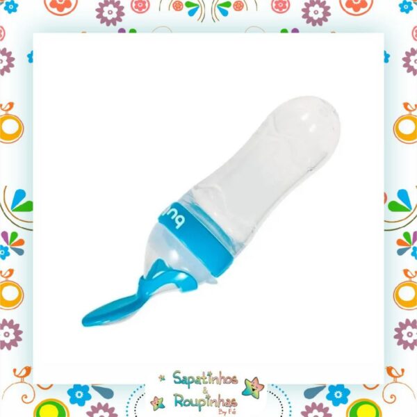 A Colher Dosadora é um utensílio 2 em 1 para bebês que vem com uma colher acoplada em um recipiente de silicone que armazena papinhas e também o leite. A Colher Dosadora Bebê vai dosando a quantidade do alimente na medida em que a criança o ingere. Isso porque o recipiente acoplado vai enchendo a colher aos poucos. A Colher Dosadora é transparente e possui capacidade de 90 ml. O utensílio é feito de silicone, livre de BPA e ftalatos. Por não possuir o bico, não tem a possibilidade de a criança confundir a Colher Dosadora com o peito da mãe.É muito simples higienizar a Colher Dosadora, basta utilizar água morna com sabão líquido neutro. Não é recomendado ferver, esterilizar ou levá-la ao micro-ondas.