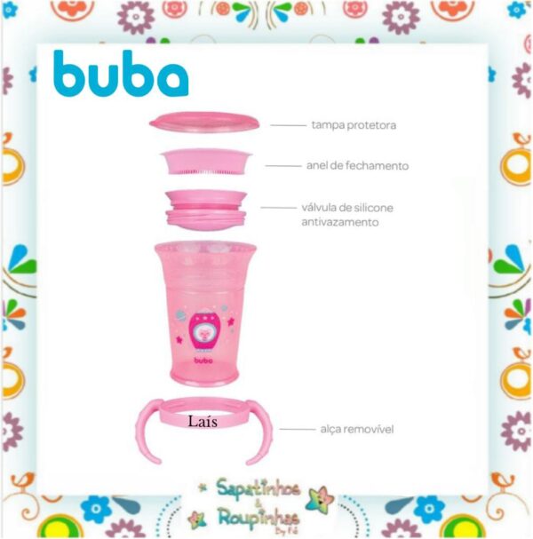 Buba – Copo de treinamento 360° com alça removível com gravação a laser