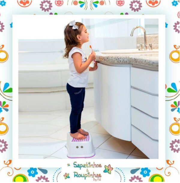É hora de cuidar! A Buba traz itens pensados com muito carinho para o seu bebê. Itens que acompanham as diversas fases e contribuem para o crescimento saudável da criança.O Degrau infantil Buba, foi desenvolvido para ajudar seu pequeno a alcançar a pia, vaso sanitário, dando autonomia para seu filho. Ele é leve, portátil e com ante derrapante, para maior segurança.
