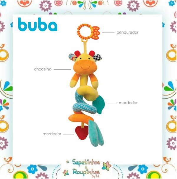 A Girafinha Mola Happy Zoo da Buba é feita em pelúcia macia, com formato de mola. Ajuda no desenvolvimento do tato por sua textura, da audição pelo barulhinho de chocalho e da visão por suas cores fortes e contrastantes. No primeiro ano de vida, a visão passa por muitas transformações e o bebê vai desenvolvendo a habilidade de enxergar o mundo. A partir dos 2 meses os pediatras indicam brinquedo com cores fortes e contrastantes para ajudar no desenvolvimento da visão. A linha Buba Baby traz itens pensados com muito carinho para o seu bebê. Através de cores, formas e texturas, estimula todos os sentidos, contribuindo para o crescimento saudável da criança.
