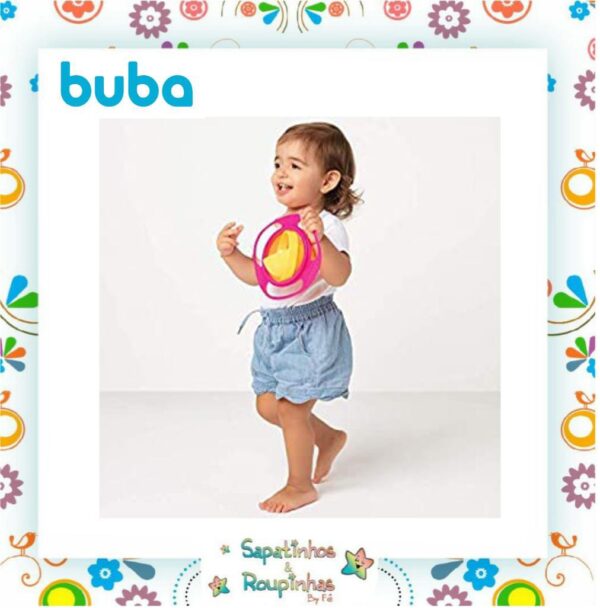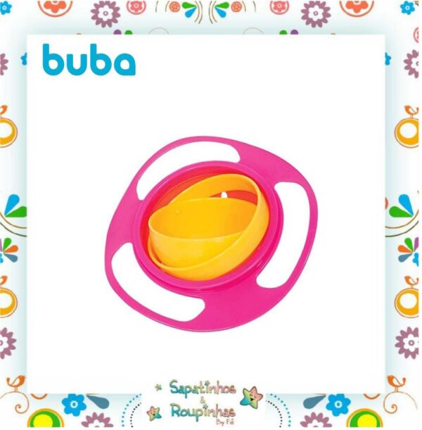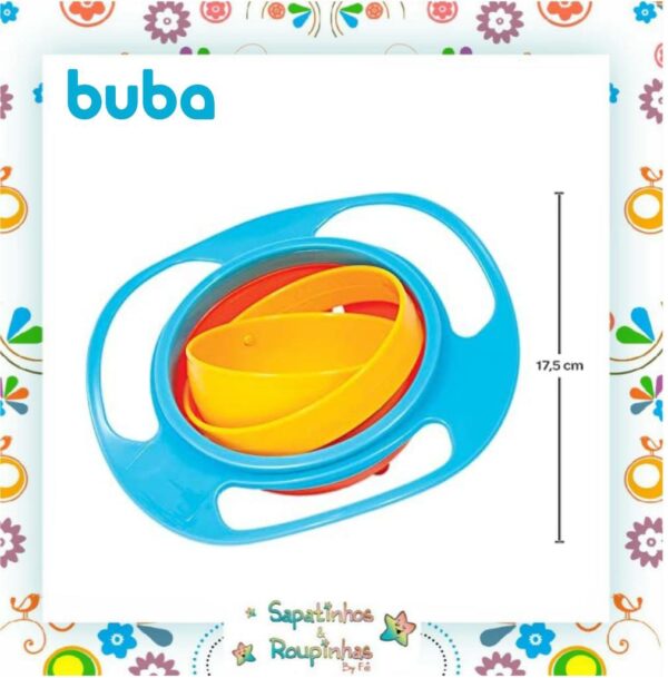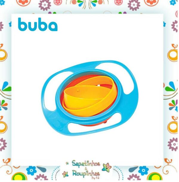 O giro bowl da buba tem design moderno e diferenciado, não importa a posição em que é segurado, o bowl gira 360° de acordo com o movimento da criança, mas a parte interna continua sempre virada para cima, sem deixar o alimento cair. A linha de alimentação da buba traz itens práticos que facilitam a vida das mães e acompanham as diversas fases da criança contribuindo para um crescimento saudável