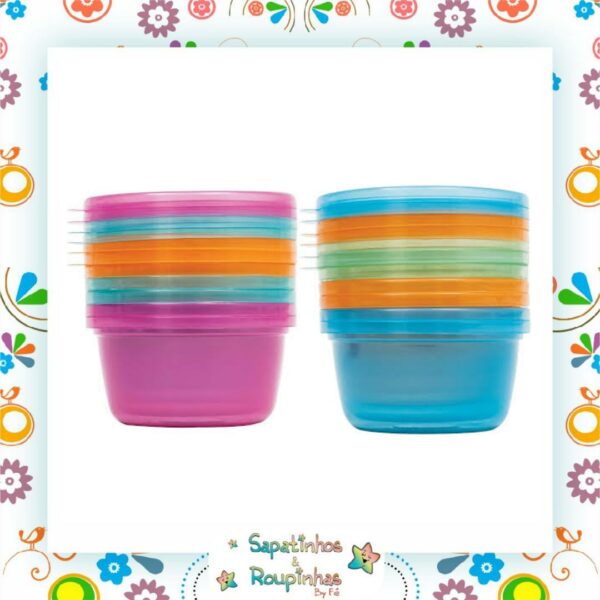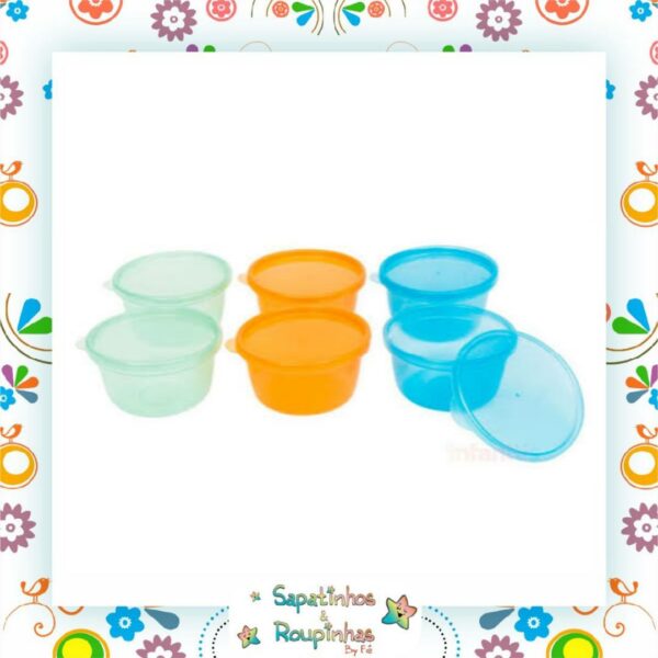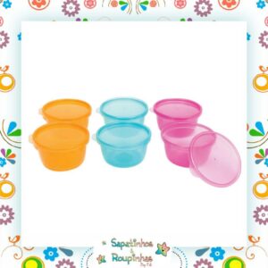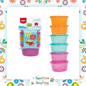 Kit com 6 potes de 250ml cada, com tampas para papinha da marca Buba, Ideais para armazenar e transportar os alimentos do bebê.