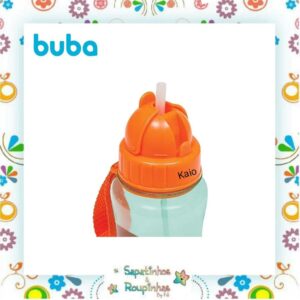 Possui proteção de uma tampa flip-top, com canudo em silicone e retrátil; vem com pulseira para ajudar a criança carregar sua garrafinha