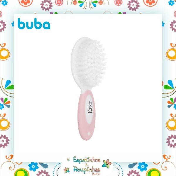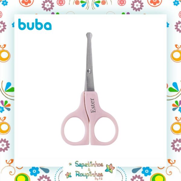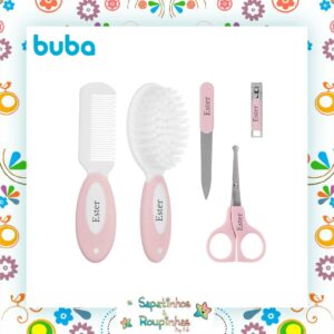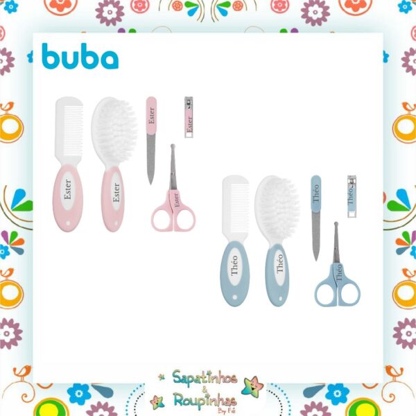 O Kit Cuidados da Buba foi desenvolvido para cuidar com delicadeza e seguranca do bebê. A tesoura tem as pontas arredondadas, e a escova com cerdas macias, ideal para passeios e viagens.