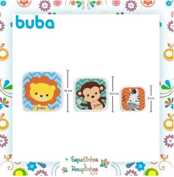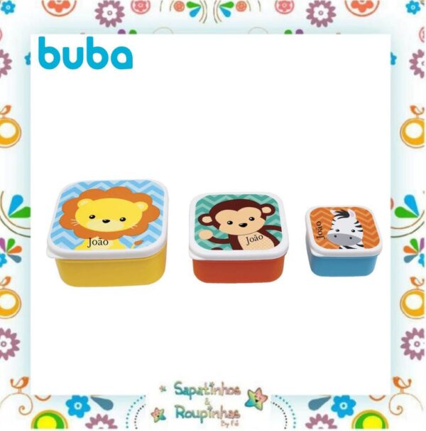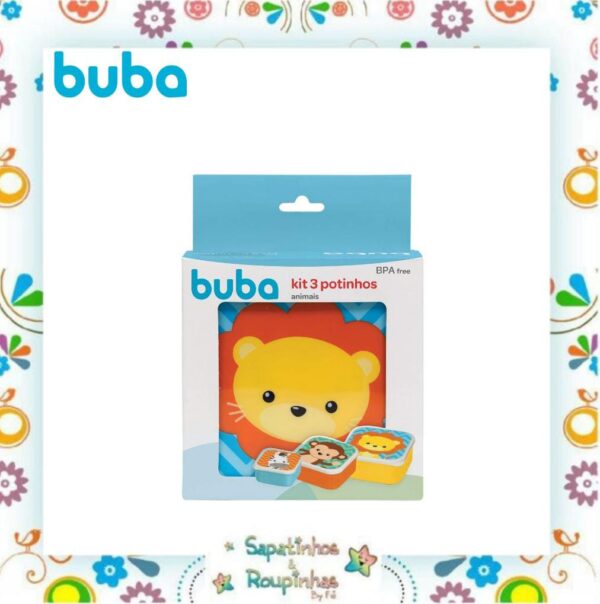 O conjunto com 3 potinhos animais da Buba, é ideal para armazenar as papinhas, frutinhas e alimentos do pequeno, além de prometer mais praticidade e segurança para as mamães.