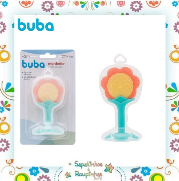 O Mordedor de Silicone Girassol da Buba foi produzido inteiramente em silicone supermacio. É leve e fácil para o bebê segurar. A haste da flor é perfeita para as mãozinhas pequenas. As pétalas e o miolo são texturizados com bolinhas macias para o bebê morder e massagear as gengivas, aliviando o desconforto causado pelo nascimento dos primeiros dentinhos. Possui case protetora para transportar com higiene.