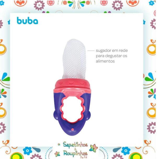 Os bebês vão se deliciar com os sabores das frutas e legumes! O Porta-frutinha da Buba é ideal para introduzir novos alimentos ao bebê com segurança. Com sugador em rede e design anatômico, é perfeito para o bebê segurar, estimulando a autoalimentação. Possui tampa protetora para guardar e transportar com higiene.