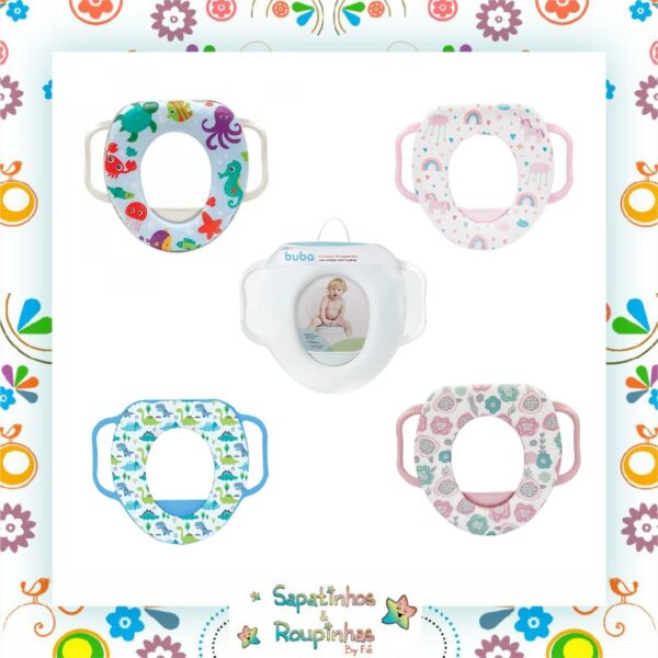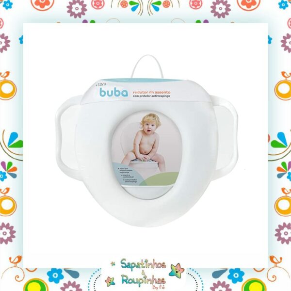 O Redutor de assento infantil da Buba ajuda as crianças a se adaptarem ao uso do vaso sanitário de maneira ainda mais confortável. Ele possui revestimento acolchoado, suportes inferiores que previnem que o redutor escorregue, protetor antirrespingo e alças para as crianças se sentirem mais seguras. A linha da Buba traz itens práticos que facilitam a vida das mães e acompanham as diversas fases da criança contribuindo para um crescimento saudável.