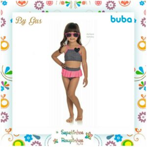 Maiô infantil, ideal para bebês meninas, confeccionado em tecido poliamida e elastano. Possui decote redondo, babado com estampa xadrez, aplicação de coração decorativo, sem manga, acabamento e costura no tom.