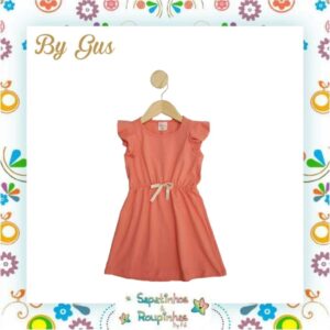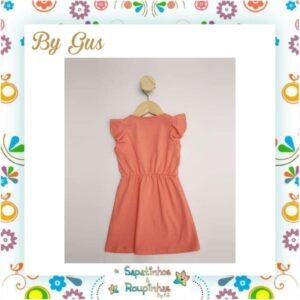 Vestido infantil, ideal para meninas, confeccionado em tecido algodão e elastano. Possui decote redondo, manga curta com babado, amarração na cintura, acabamento e costura no tom.