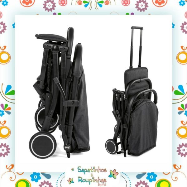 Com o carrinho fechado, levante o apoio de pés e puxe a alça de transporte. Pronto, seu TrolleyMe já pode ser carregado de forma fácil e leve.A alça também serve de suporte para o apoio de pés.