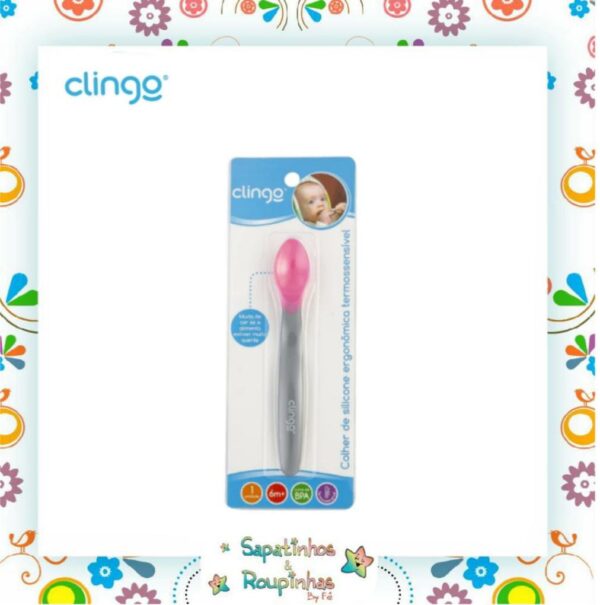 A colher de silicone ergonômica termosensível da Clingo, foi desenvolvida de maneira que ela muda de cor quando o alimento estiver muito quente. Ajuda o pequeno a comer sozinho com facilidade e segurança, e é ideal para a transição da criança para uma alimentação sólida. Material macio, com bordas arredondadas para evitar que as crianças machuquem as gengivas.