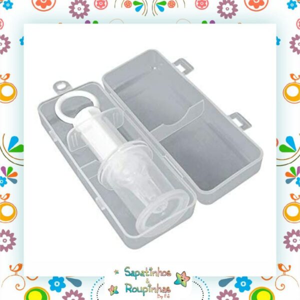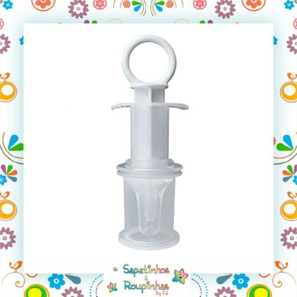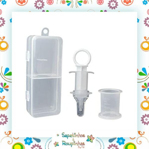 O Dosador de Medicamentos possui um design de seringa com marcação de até 10ml, com um bico de silicone de alta qualidade, sendo ele macio, e um copo medidor com marcação de até 20ml. Acompanha um estojo para ser levado em passeios e viagens.