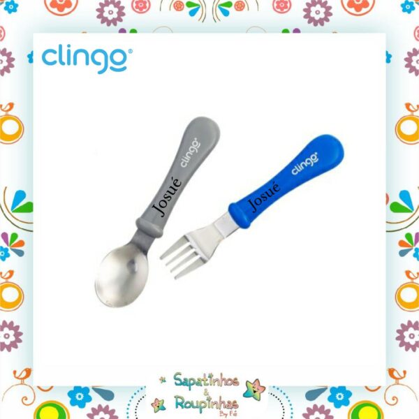 Kit talher um garfo e uma colher em aço inox com cantos arredondados.