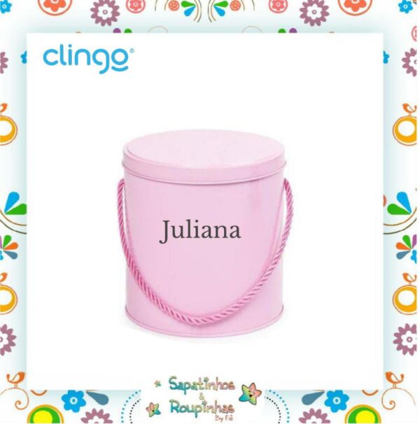 Lata alta redonda com alça perfeita para decoração. Você pode personalizar com o nome do seu bebê.
