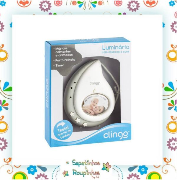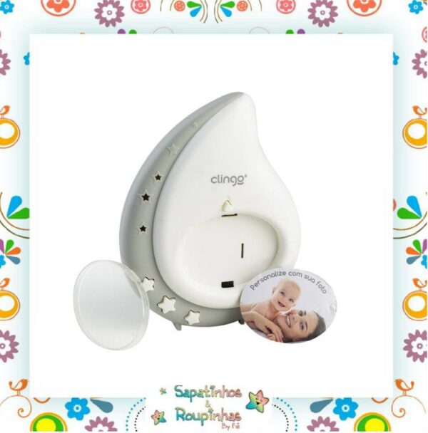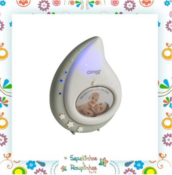 Para deixar o quartinho do bebê ainda mais lindo e aconchegante, a luminária Infantil com luz E sons relaxantes gota Clingo também é porta retrato e conta com a função timer, mantendo a funcionalidade por um período.