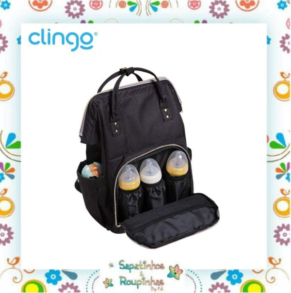 A mochila conta com vários compartimentos para facilitar o período de maternidade, incluindo três compartimentos térmicos para mamadeira além de outros bolsos e espaços para guardar diversos tipos de ítens necessários