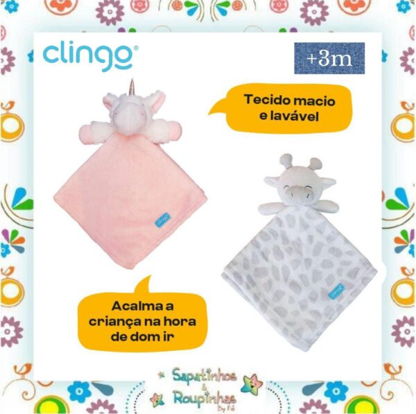 As naninhas da Clingo diminuem a ansiedade do bebê nos momentos de separação da mãe, além de marcarem uma fase importante do desenvolvimento psíquico através de cores, formas e texturas que estimulam todos os sentidos, contribuindo para o crescimento saudável da criança.Tecido muito aconchegantes;