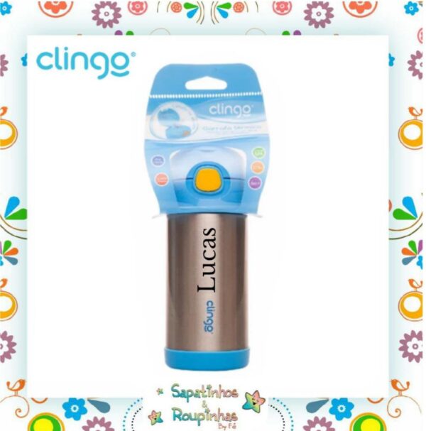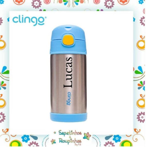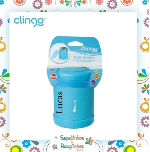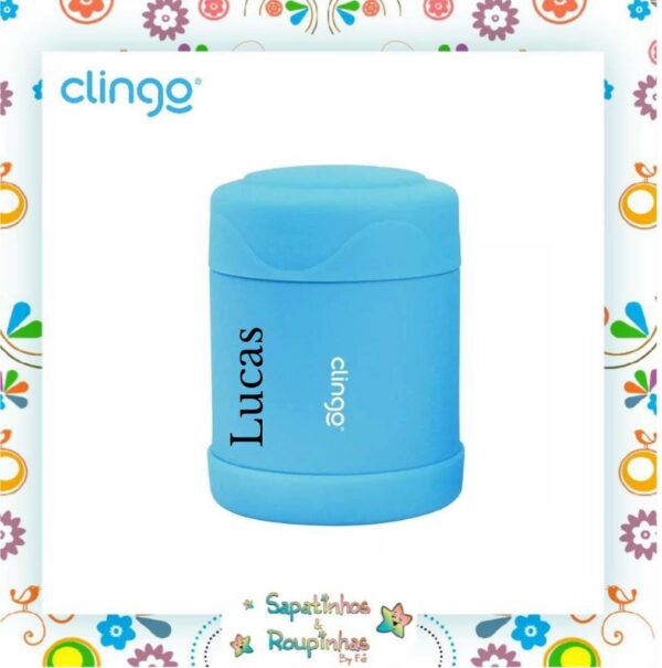 Clingo – Pote Térmico azul + Garrafa térmica Azul com gravação a laser