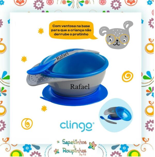 Clingo – Prato com ventosa e colher com gravação a laser