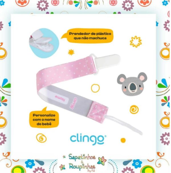 O prendedor de chupeta da Clingo tem o design fofinho sempre combinando com o seu bebê, um acessório perfeito para ter desde o enxoval.