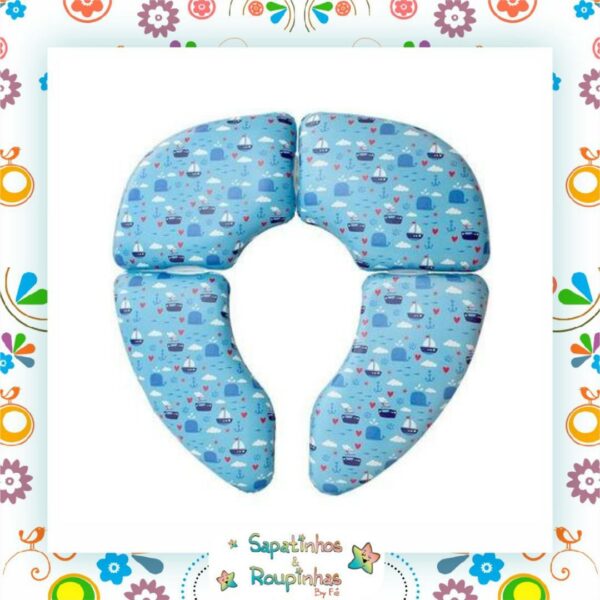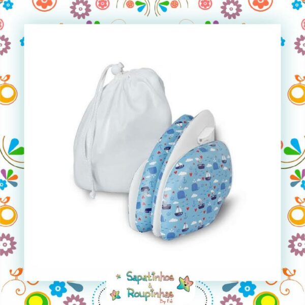 Revestimento acolchoado que proporciona conforto e segurança para a criança usar no banheiro, inclui sacola para transporte.