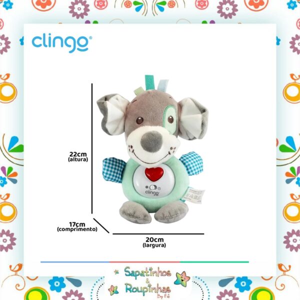 A Pelúcia Musical da Clingo além de ser extremamente macia e suave ao toque, é um brinquedo muito interativo que alegrará o bebê e incentivará seu desenvolvimento. Ele consegue emitir tanto músicas suaves e calmantes que auxiliarão o sono do bebê, quanto efeitos sonoros divertidos e sons de animais que o manterão entretido; além disso, seu coração emite uma linda luz.
