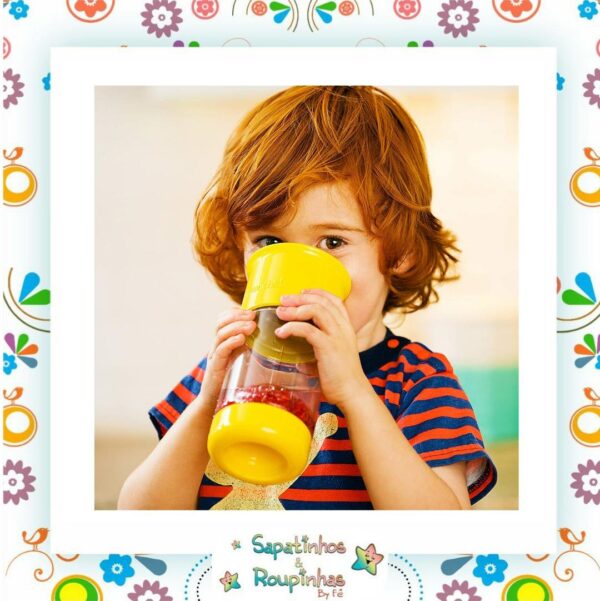 Você pode colocar frutas no compartimento na parte inferior do copo. Além disso, com sua tecnologia 360º as crianças podem beber de todos os lados, porque o copo não tem bico. O copo possui uma válvula que fecha automaticamente após beber, e também ajuda na transição para um copo aberto. A tecnologia Miracle conta com sistema anti vazamento que evita bagunças e é muito fácil de limpar. Um grande aliado para a saúde dental infantil, pois não possui nenhum tipo de bico.