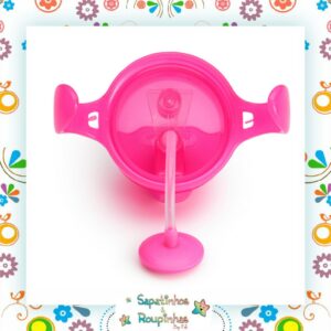 O canudo possui um peso, assim a criança pode beber o líquido em qualquer angulo. Possui uma escovinha interna Para limpar o canudo. O peso pode ser removido do canudo para uma melhor limpeza, mantenha os componentes fora do alcance da criança durante a limpeza. Atenção: não use no microondas, não ferva as peças, nem esterilize a vapor e não utilizar com líquidos quentes. Não deixe a criança morder o canudo de silicone, pois poderá rasgá-lo. Não deve ser usado como mordedor. Crianças não devem andar ou correr carregando o copo. Descarte e substitua ao primeiro sinal de desgaste ou dano. Descarte todos os componentes da embalagem antes de dar o copo à criança. Composição: polipropileno e silicone.