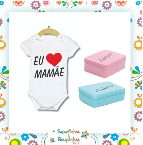 Estilinho – Body Branco Eu Amo A Mamãe Com Embalegem Com Gravação A Laser