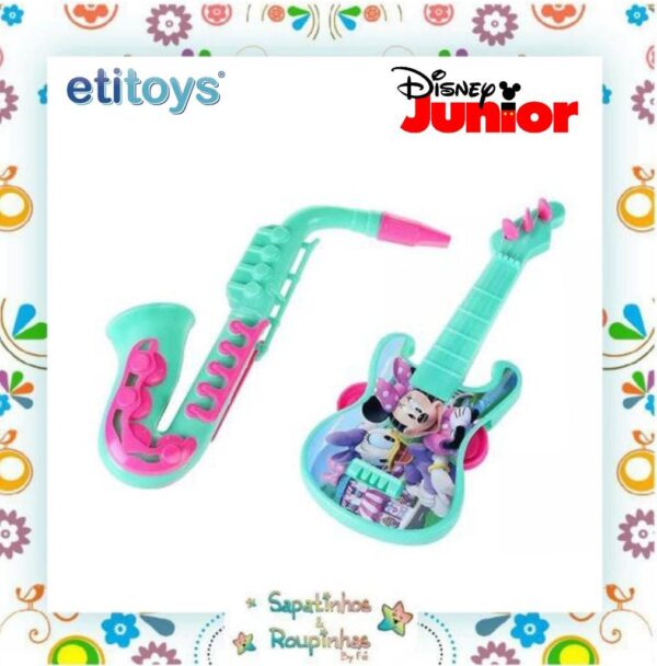 Constituído de plástico e cordas de nylon(guitarra) é um produto divertido e musical que traz mais alegria aos momentos de brincadeiras. Guitarra possui platinelas de plástico que emitem som semelhante a um pandeiro, traz a opções 3 sons diferentes (guitarra, pandeiro e saxofone) para fazer da brincadeira um momento único.