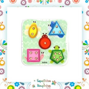 O jogo de quebra cabeça de madeira da Fisher Price festa na Floresta estimula o desenvolvimento da habilidade motora da criança ao pegar as peças, juntá las e separá las.