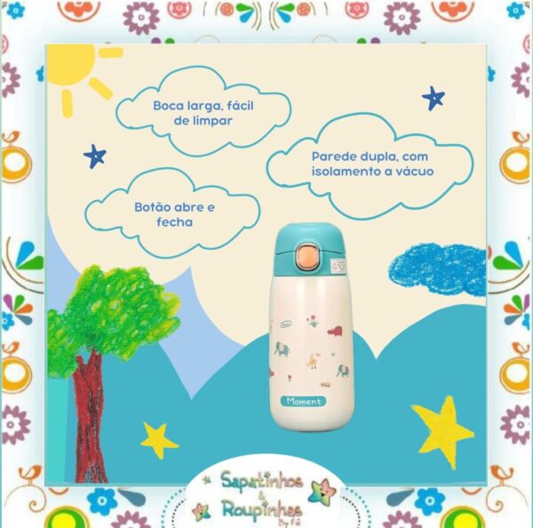 Garrafa térmica infantil com gravação a laser 360ml Moments sem canudo