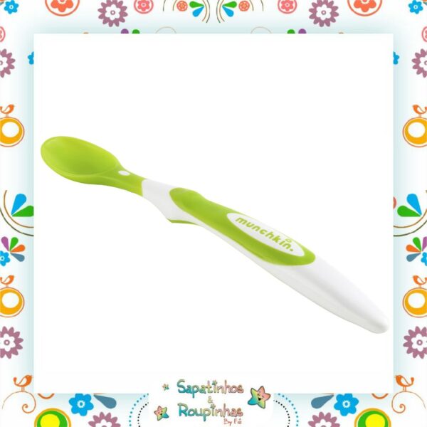 A Colher Infantil da Munchkin foi desenvolvida para atender aos pequenos que estão começando a aprender a usar talheres e é ideal para a fase de introdução de alimentos sólidos. O cabo possui formato ergonômico, tornando-a confortável para a criança utilizar. Suas cores são brilhantes e por isso prendem a atenção do bebê, chamando a atenção para a colher e a comida. Visando não agredir a gengiva delicada da criança, foi feita com borda arredondada e macia, própria para os pequenos que ainda são sensíveis e descoordenados.